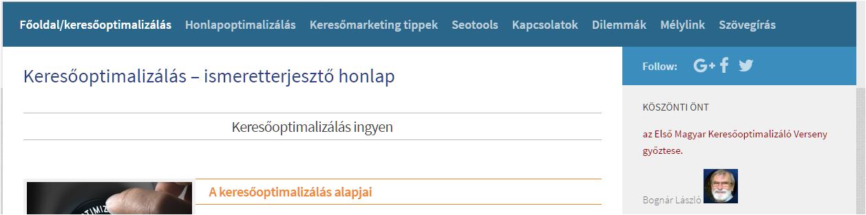 Az oldal egyébként ma már itt érhető el: > keresőoptimalizálás ingyen